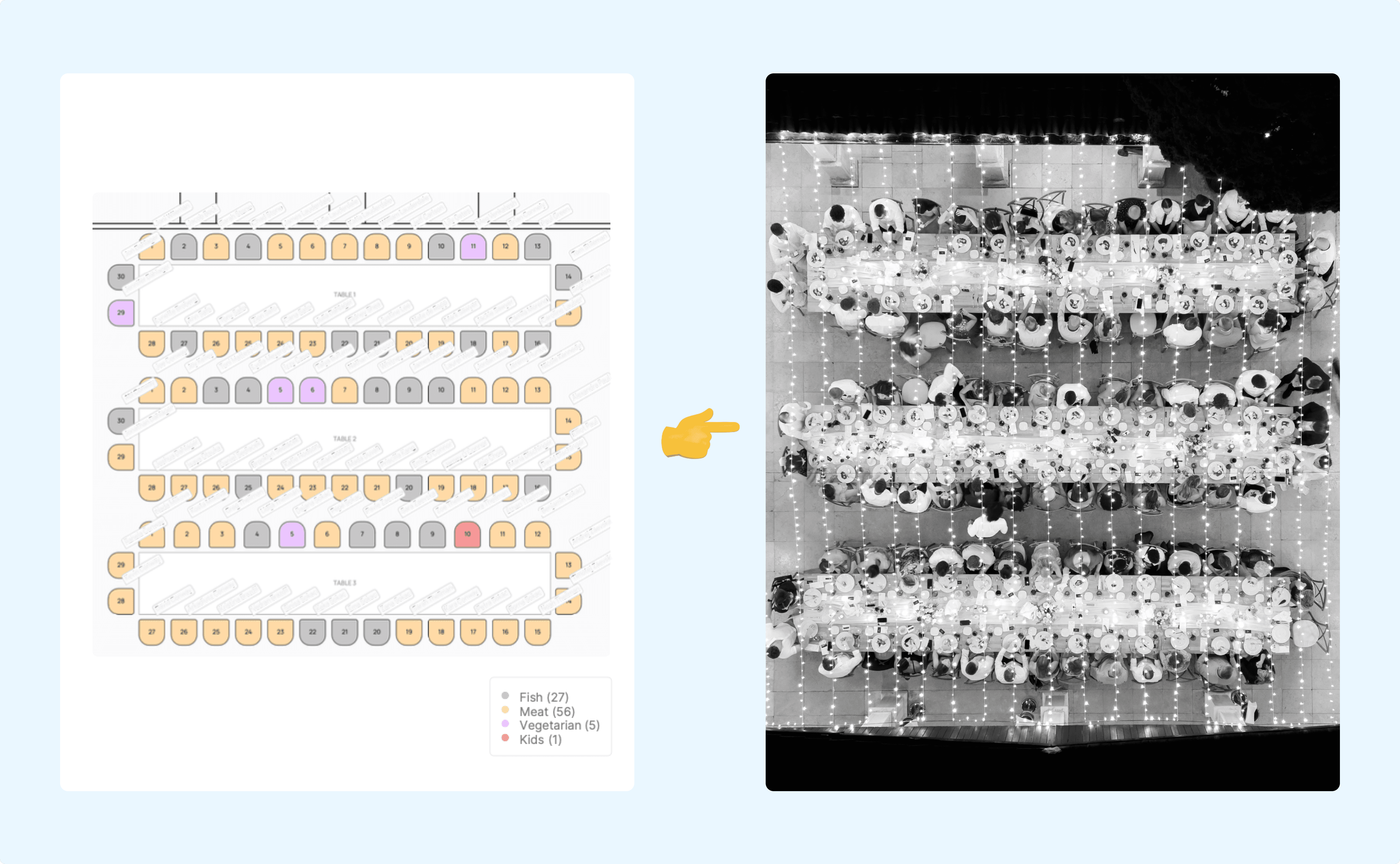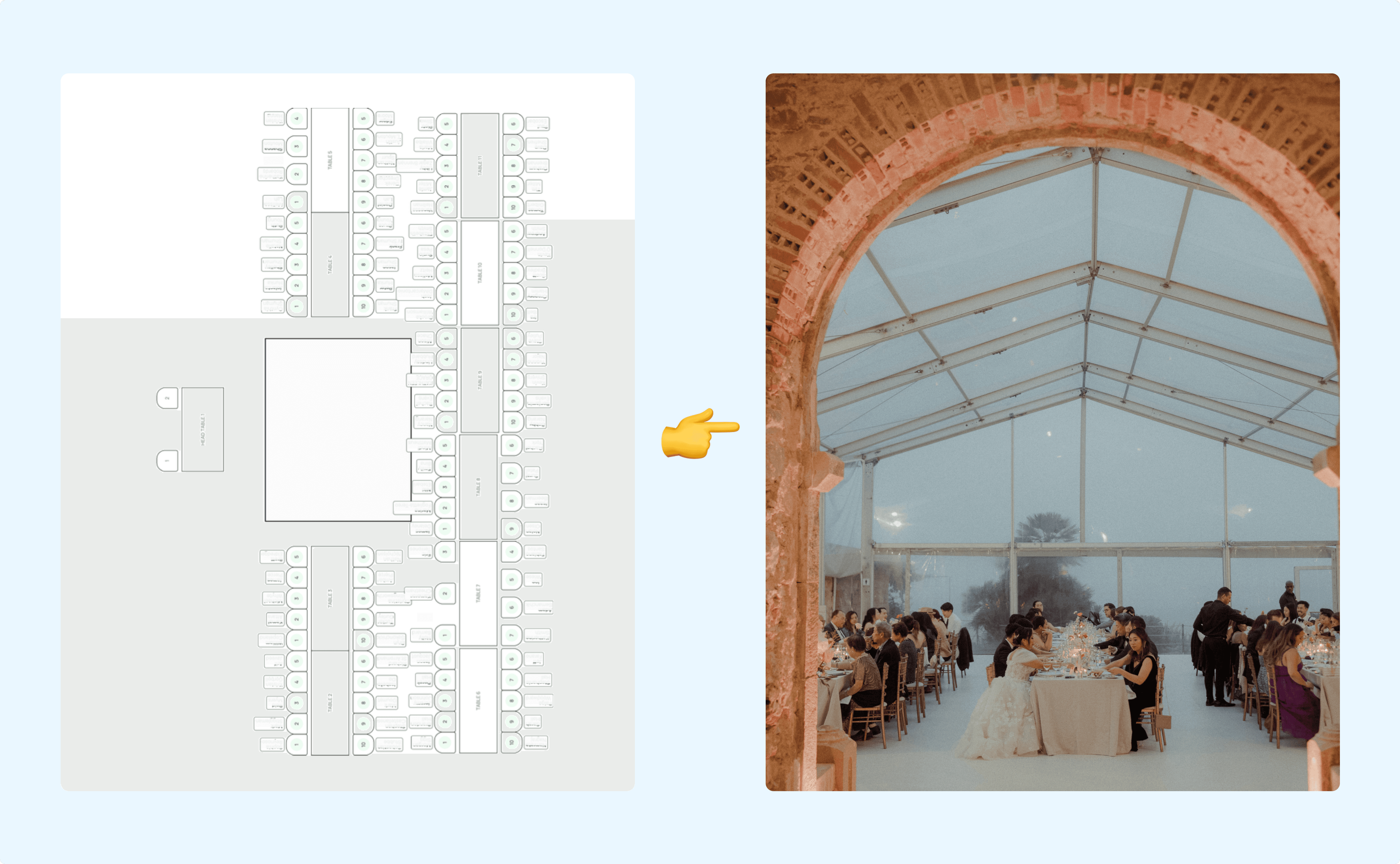The venue first told J&S that this layout would not fit in the space. After setting the floorplan to scale however, they were able to show the venue manager it was possible! Just look at this beautiful wedding - the rest is history!