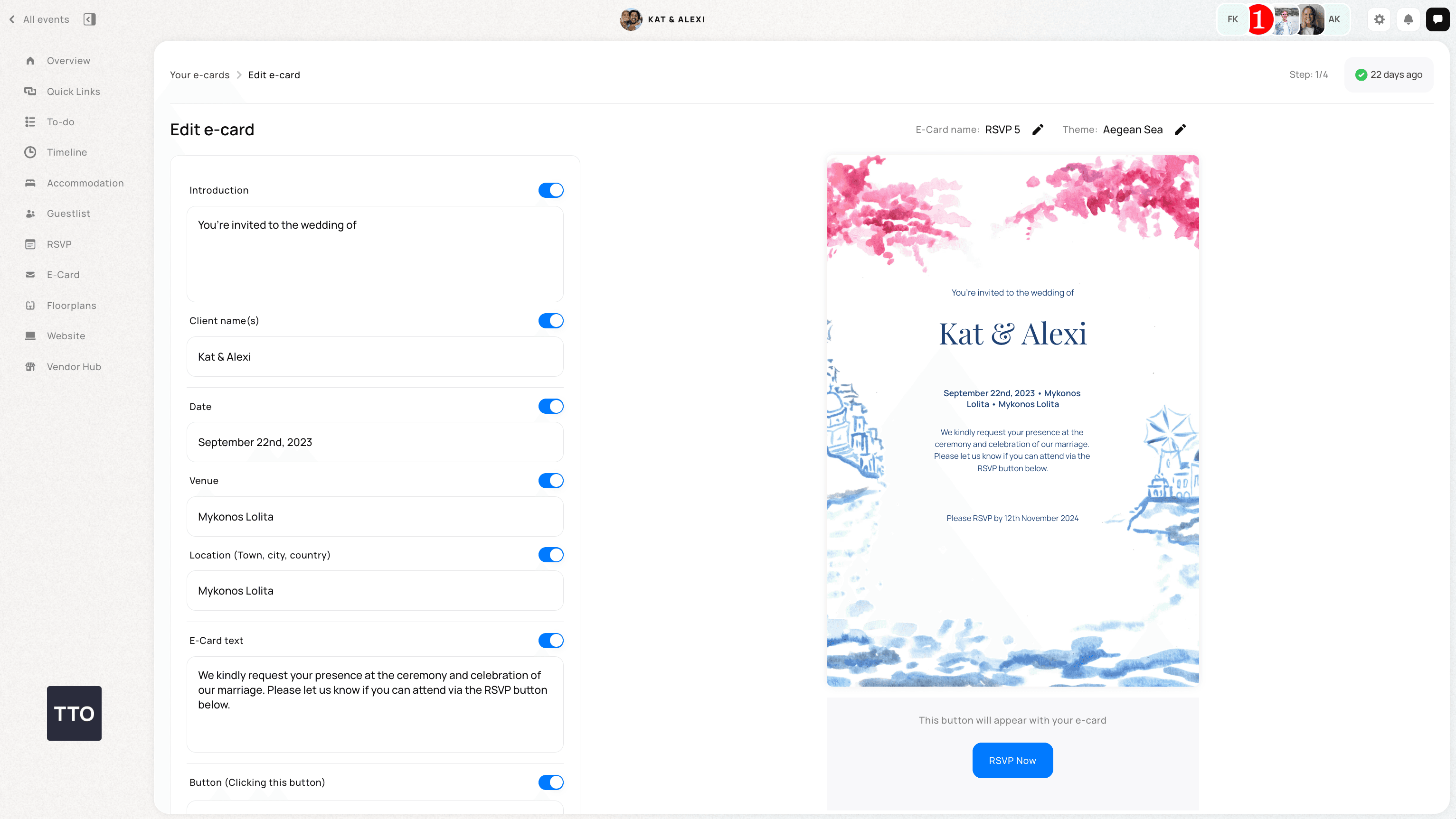 Here's a video explaining how you can create a digital invitation on TTO:
