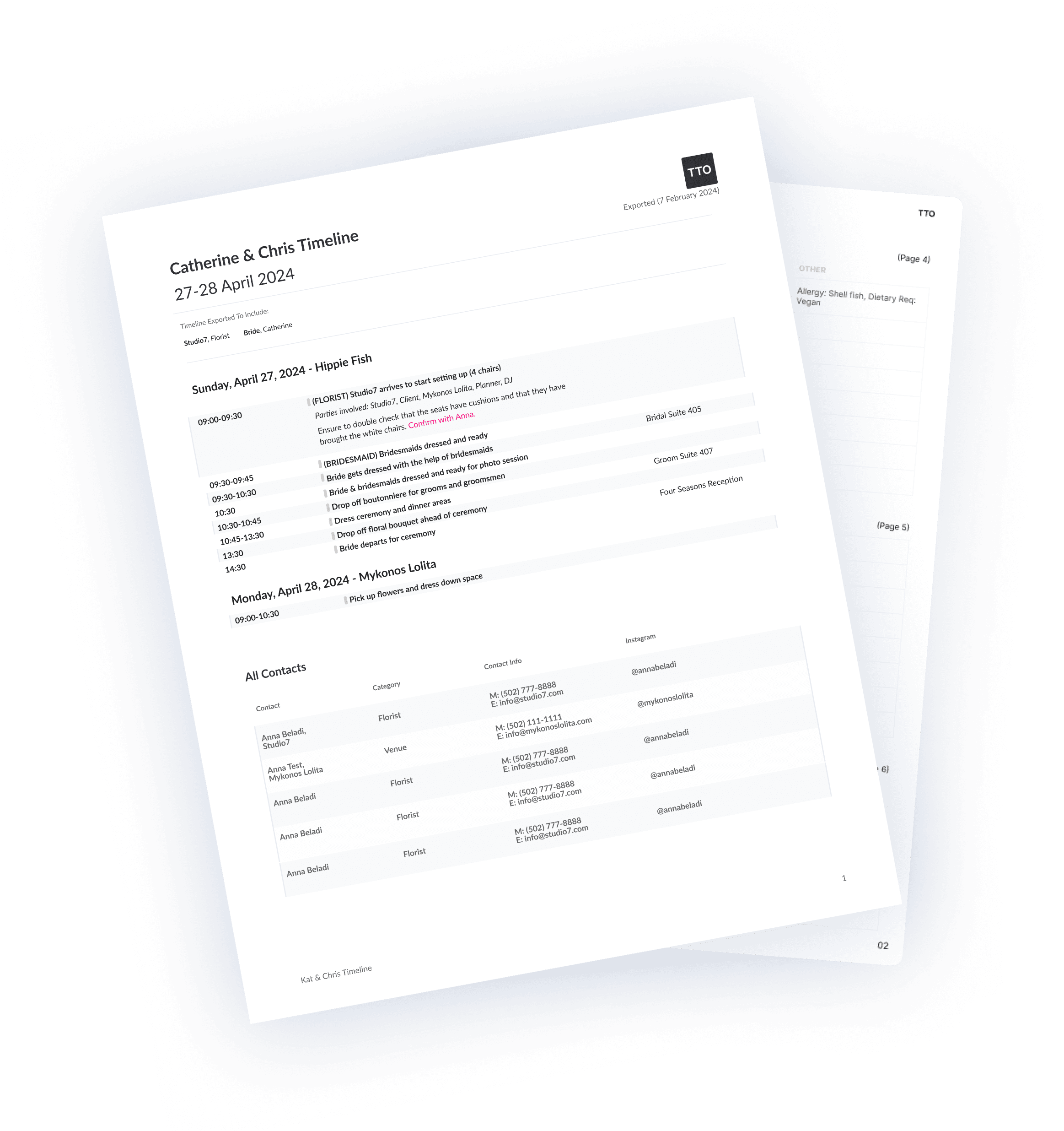 Export a PDF for each vendor outlining the timeline + contacts