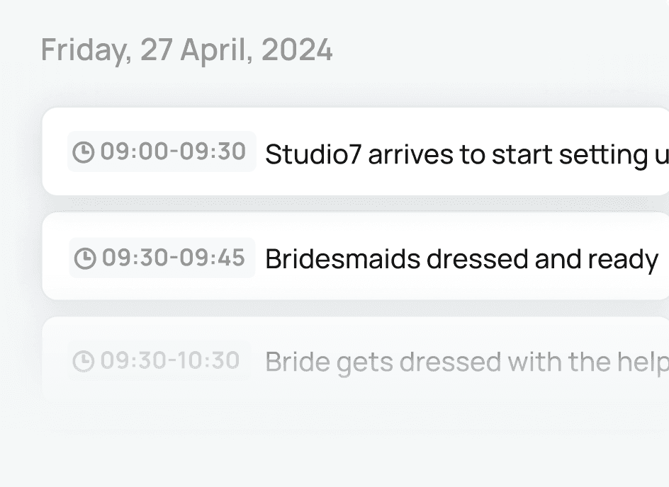 Create beautiful, detailed wedding day timelines in less time.