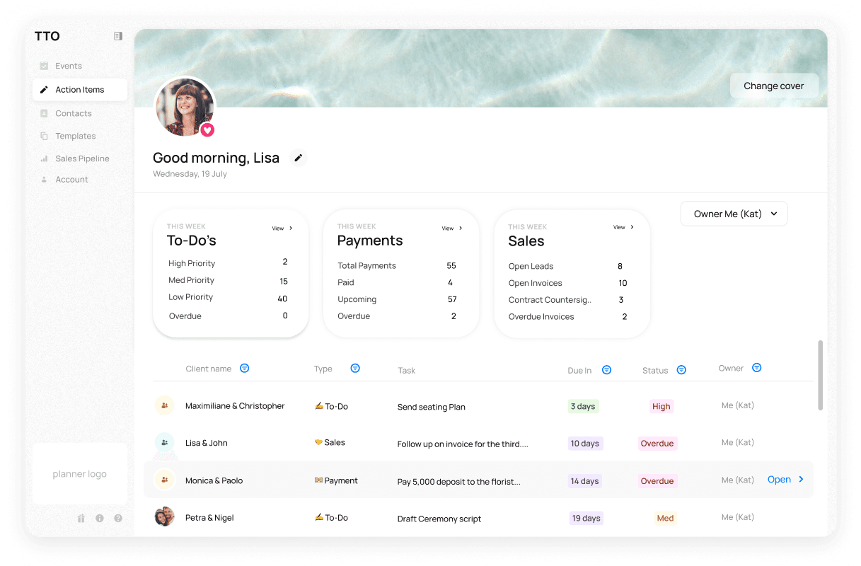 Create templates for your task lists and timelines! Easily drop them into events & tailor them to the needs of your client. You have the option to pre-set owners, priorities and due dates in the to-do template and you can even pre-set times in your timelines. Streamline your planning process and focus on what truly matters—creating unforgettable experiences. Read the guide on how to create Timeline and To-Do Templates here.
