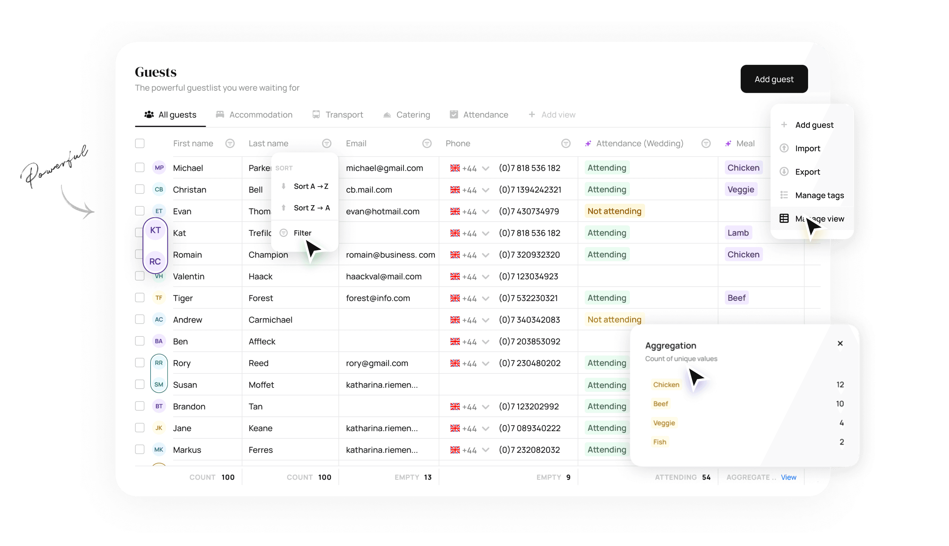 The one source of truth when it comes to guest information. Everything from attendence, to catering to accommodation in one place. Watch the RSVPs roll in straight into your guestlist. Read the full Guestlist Guide here.