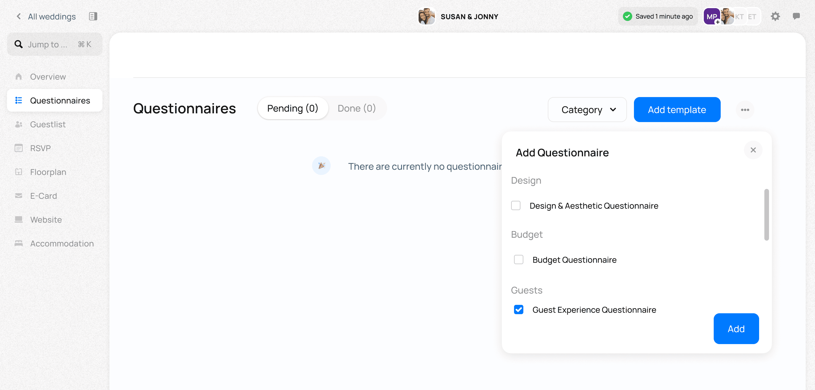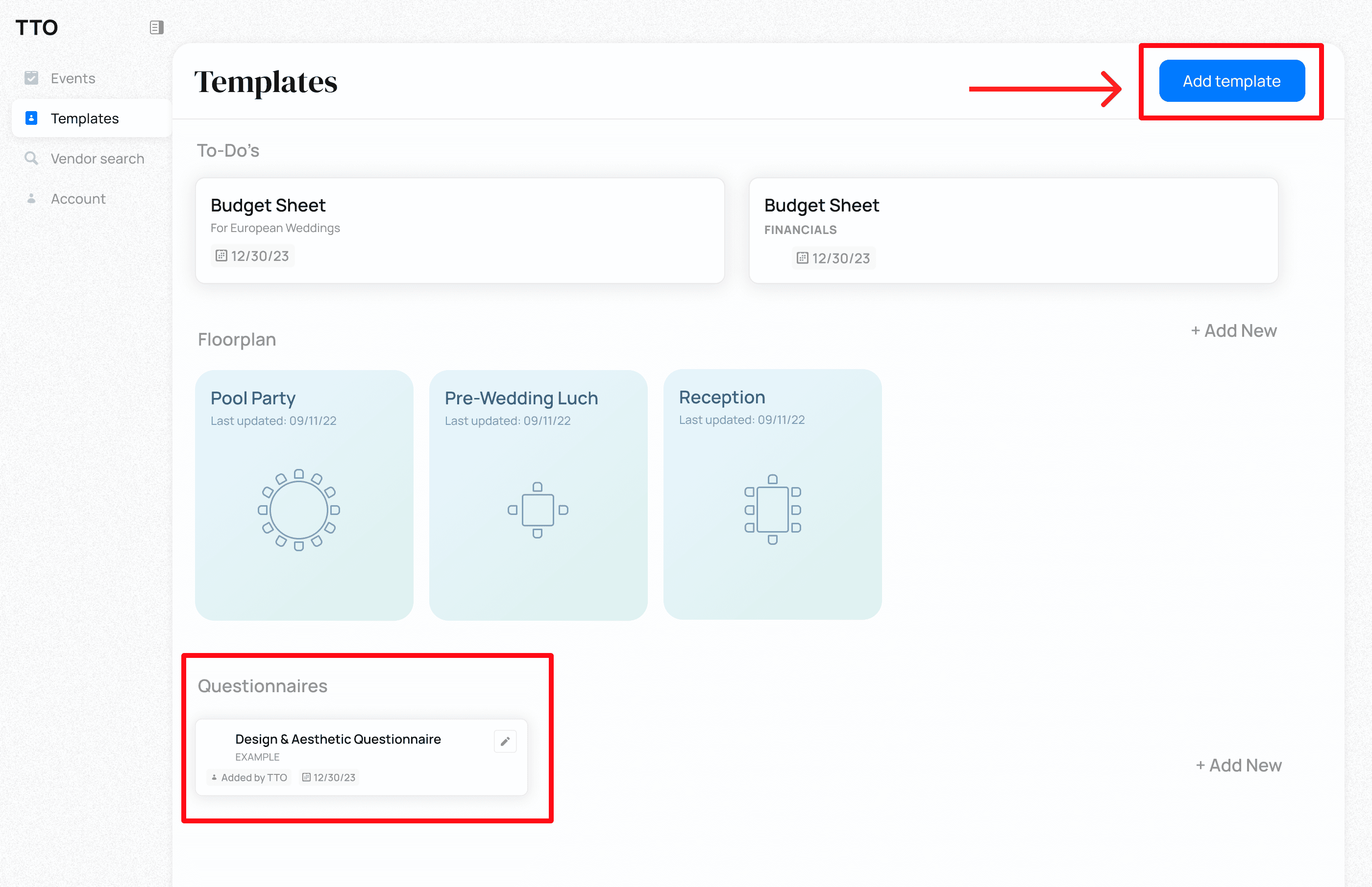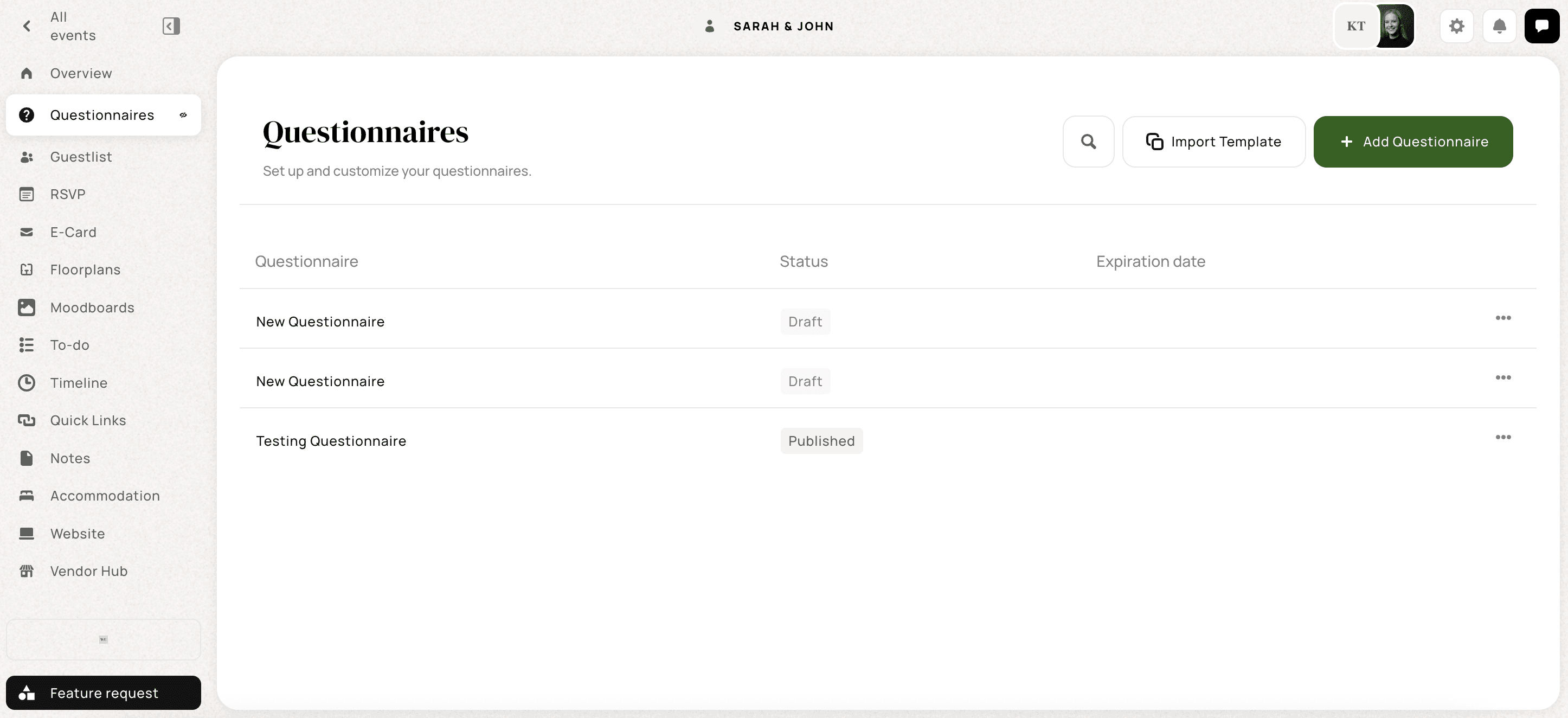 1. Create a questionnaire template to re-use across events in the "Templates" tab.