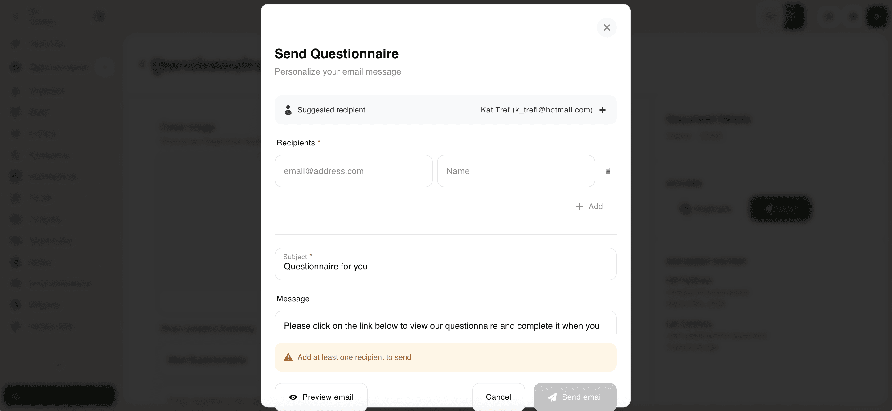 ✏️ Sending a Questionnaire to a Client
